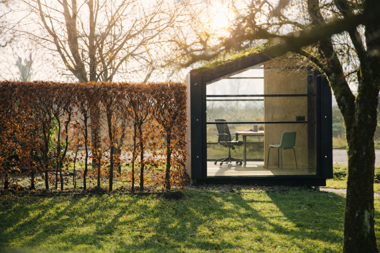 Ook ons kantoor laat zien dat duurzaamheid en creativiteit prima samengaan. In 2022 onderging het een metamorfose, waarbij we zoveel mogelijk bestaande inventaris hergebruikten of doneerden. De vloer is gemaakt van gerecyclede PET-flessen en de bar ontstond uit een oude keukentafel, elk detail met een eigen verhaal. Buiten ligt een bloemrijke kantoortuin met een bijenkast en volop ruimte om even op te laden. In de tuin staan twee biobased office pods met een groen sedumdak, die zorgen voor rust, focus en afwisseling in de werkdag. Vergaderen kan daarnaast op het water, in onze mobiele vergaderruimte: een elektrische boot die ons emissievrij door de waterrijke omgeving van Breukelen vaart.